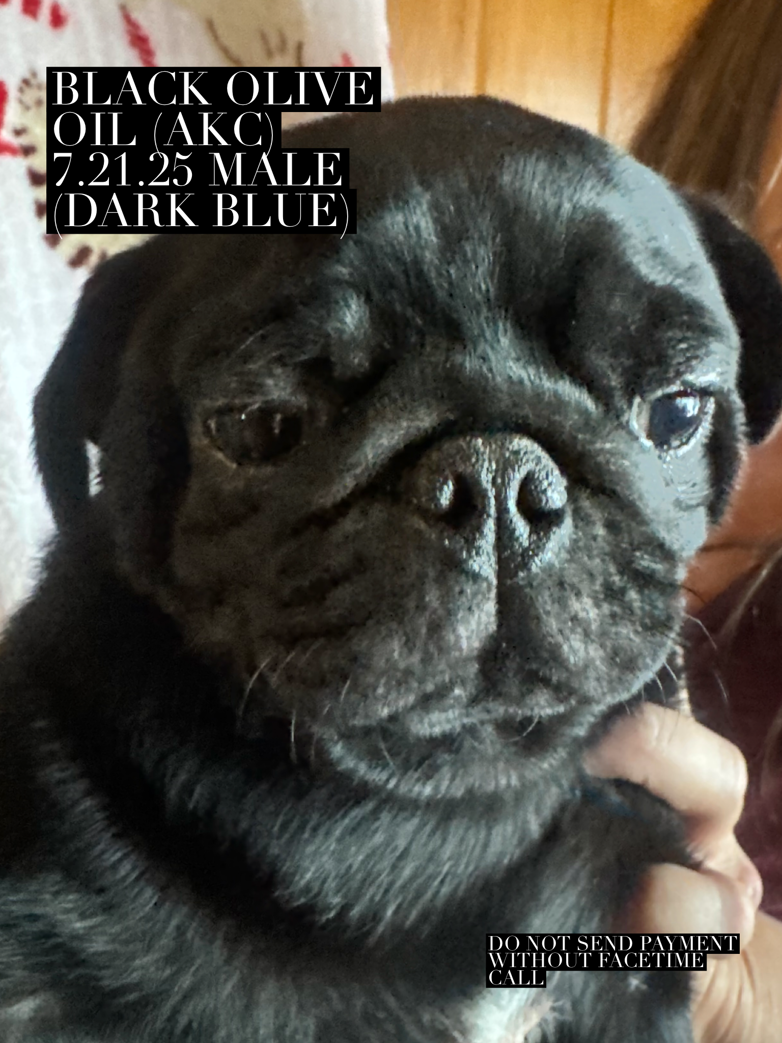 To be placed on our waitlist fill out puppy application and once approved via email a $300 non-refundable deposit must be sent via VENMO to @floridasroyalpugs this will secure your puppy's placement into your home. The $300 will go towards the final payment of your puppy. Please email back a screenshot confirmation that payment was submitted after being approved.